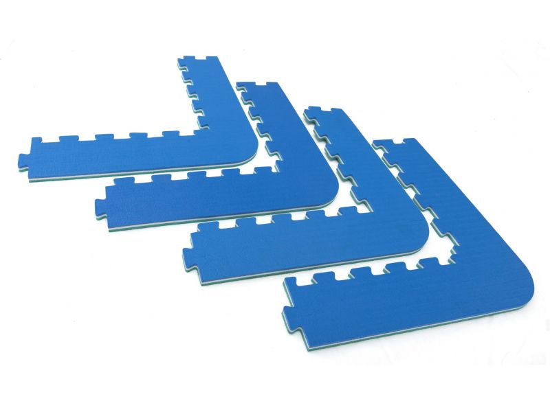 Kit angoli ignifughi CL1 ad incastro , bicolore blu/verde,ammortizzanti, con film protettivo su entrambi i lati per rendere la superficie resistente e lavabile.