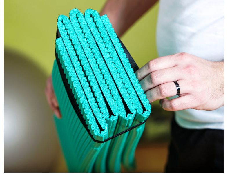 La larghezza di 70 cm permette alla persona di appoggiare completamente le spalle al tappeto rendendolo l'ideale per gli esercizi a terra, la spiaggia ed il campeggio.